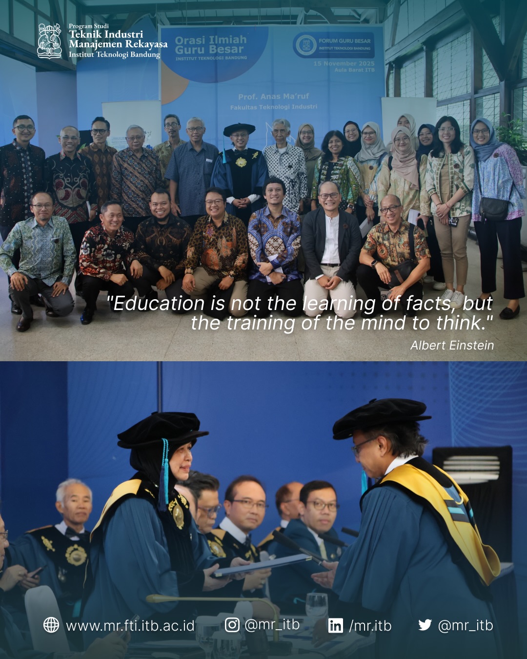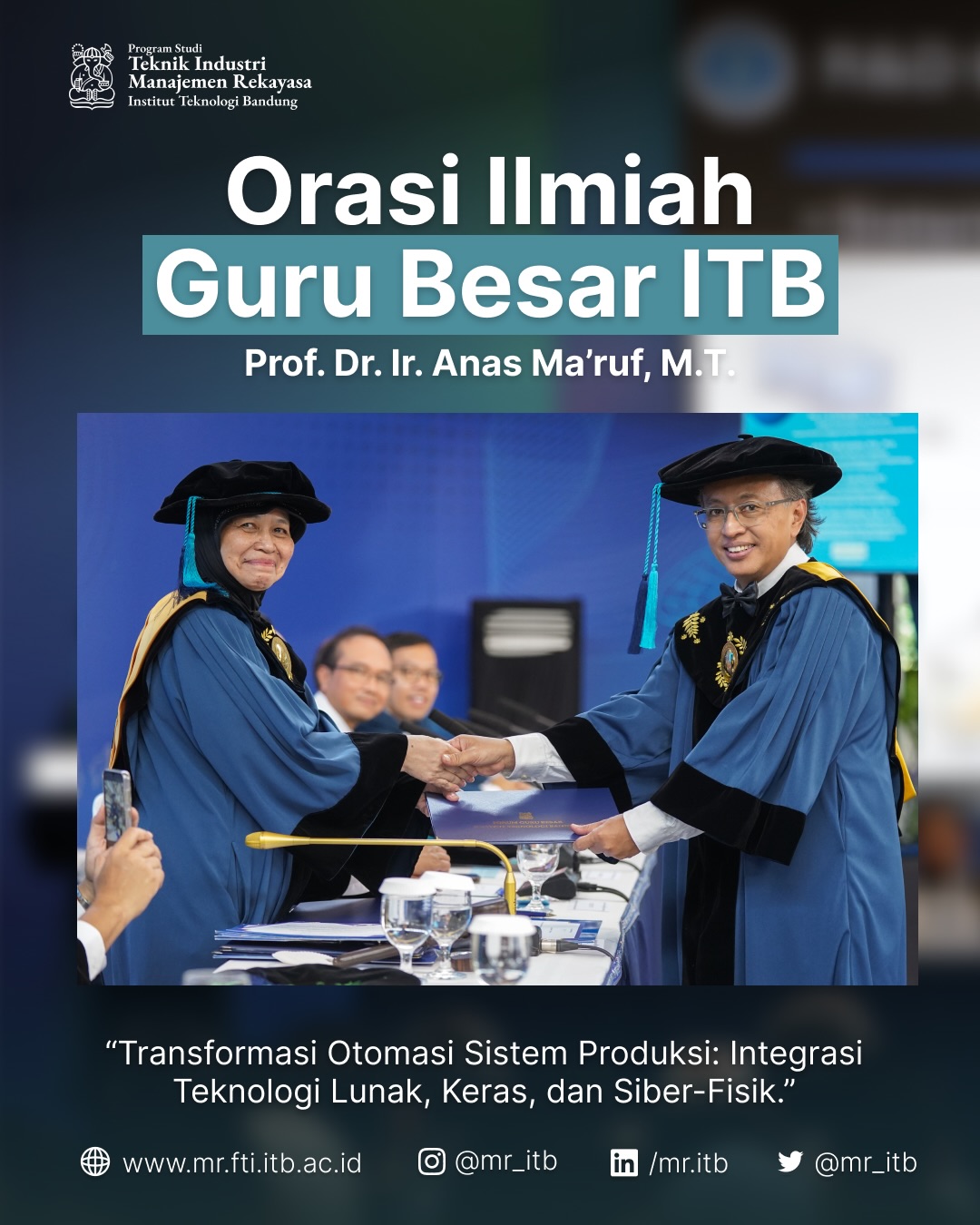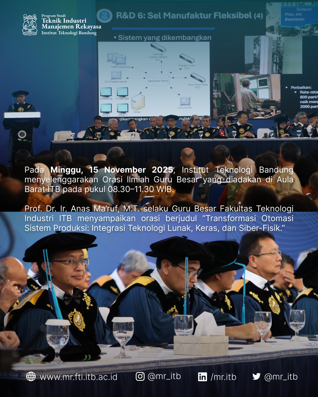 Komunitas Teknik Industri mengucapkan selamat dan apresiasi kepada Prof. Dr. Ir. Anas Ma’ruf, M.T. atas penyampaian Orasi Ilmiah Guru Besar Institut Teknologi Bandung yang diselenggarakan pada Minggu, 15 November 2025.